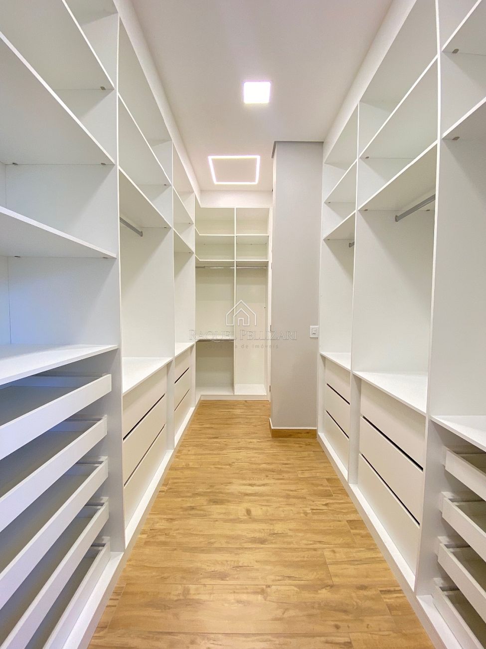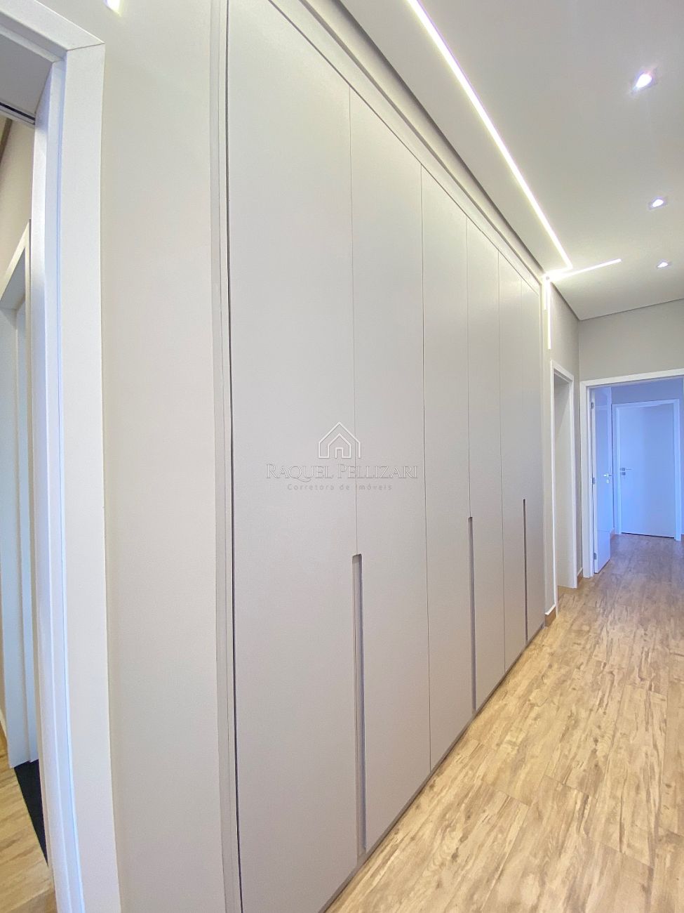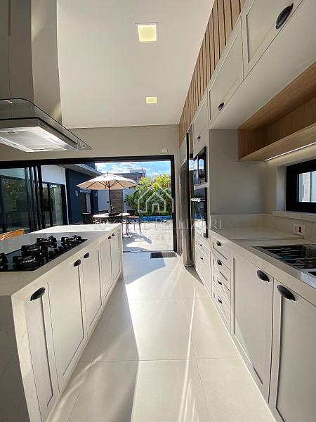 A marcenaria de alto padrão presente em todos os ambientes reforça o nível de acabamento e sofisticação da residência.